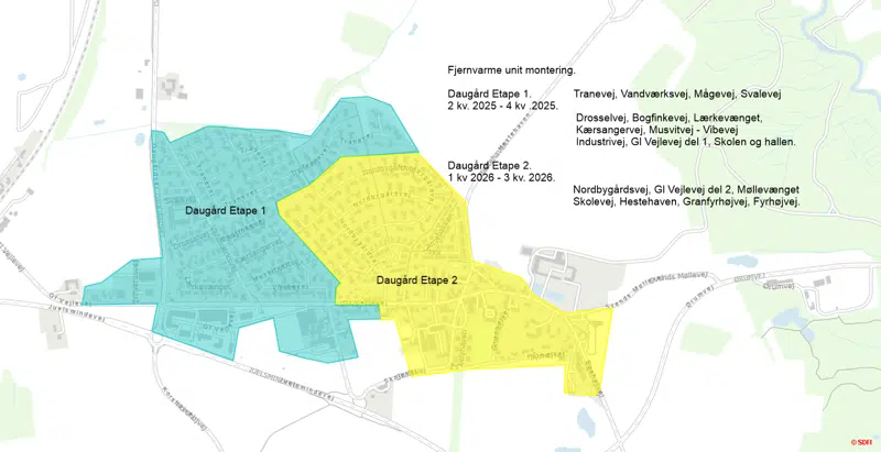Vi er på vej med fjernvarme til Daugård. Projektet er godkendt og vil efter planen gå i gang i løbet af 2024.